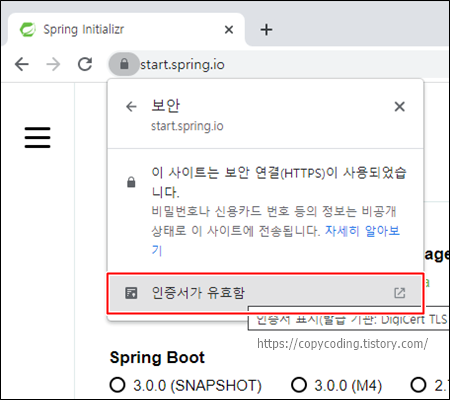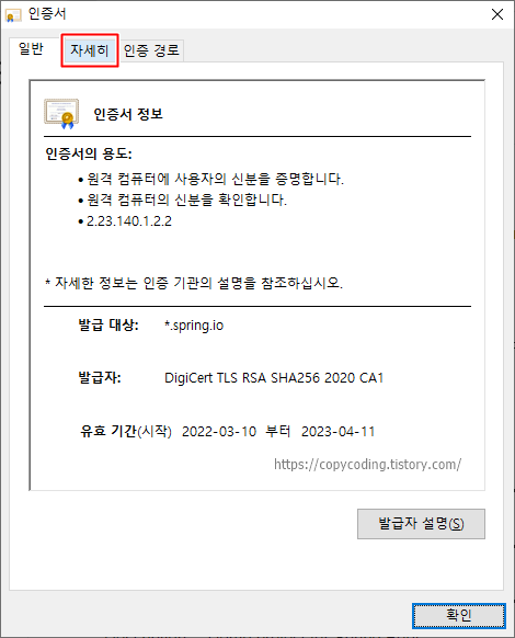 인증서 정보 창이 열렸습니다.