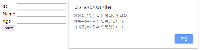 먼저 아무것도 입력하지 않고 저장 버튼을 클릭 하는 경우
