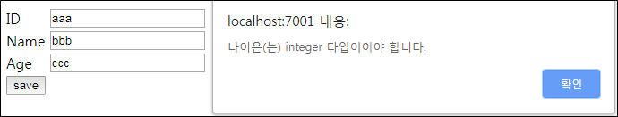 age는 숫자 이므로 숫자 입력 메시지가 출력 됩니다.
