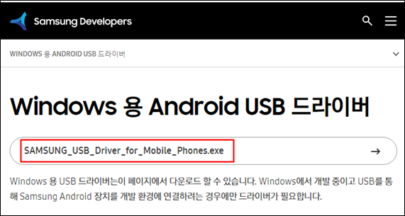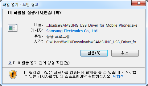 SAMSUNG_USB_Driver_for_Mobile_Phones.exe 를 클릭 하면 드라이버 다운로드가 바로 진행되고 완료 되면 실행 하여 드라이버 설치를 진행 합니다. 설치 작업은 대부분 기본 설정된 버튼을 클릭 하면 됩니다.