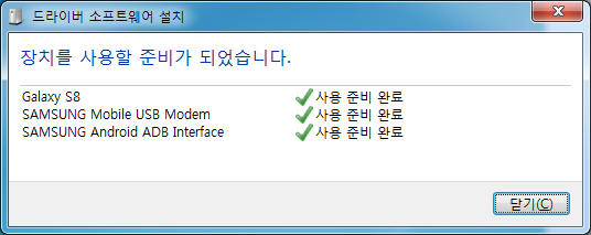 설치가 완료되면 [마침] 버튼을 클릭 하여 종료 합니다. 경우에 따라 바로 장치를 인식하는 경우도 있고 컴퓨터를 재시작 해야 스마트폰을 인식하는 경우도 있습니다. 저는 Windows 7인데 다시 시작을 해야 인식이 되었습니다. 윈도우 창 우측에서 [드리이버 소프트웨어 설치] 창을 열어보면