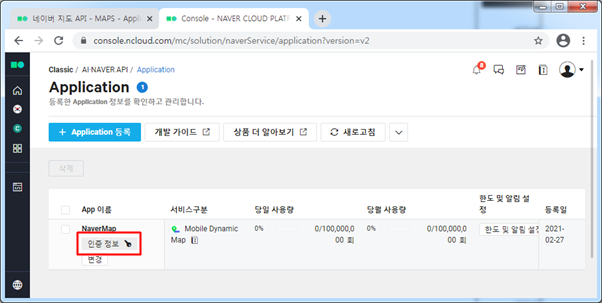 1. 네이버 맵 사용 등록