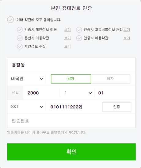 본인 확인을 위한 전화 인증을 진행 합니다.