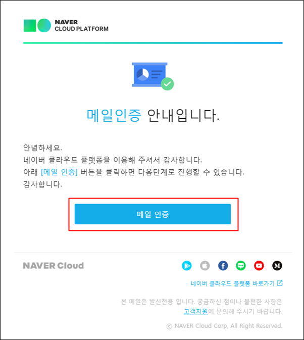 위 사진은 아이디로 입력한 메일로 수신된 인증 메일입니다. [메일 인증] 버튼을 클릭 해 줍니다.