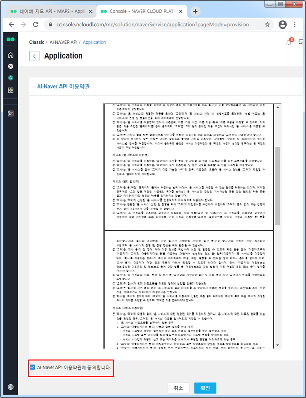 약관 동의를 하고 [확인] 버튼을 클릭 합니다.