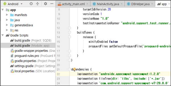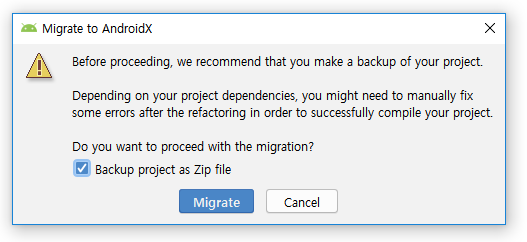 AndroidX library를 사용하도록 디펜던시를 추가합니다.