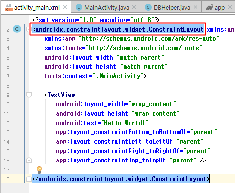 | <?xml version="1.0" encoding="utf-8"?> <android.support.constraint.ConstraintLayout ..... |