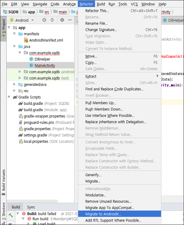 androidx로 수정을 해보도록 합니다.