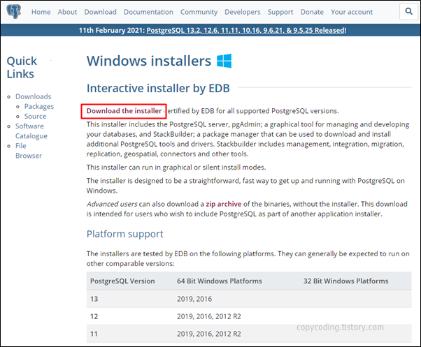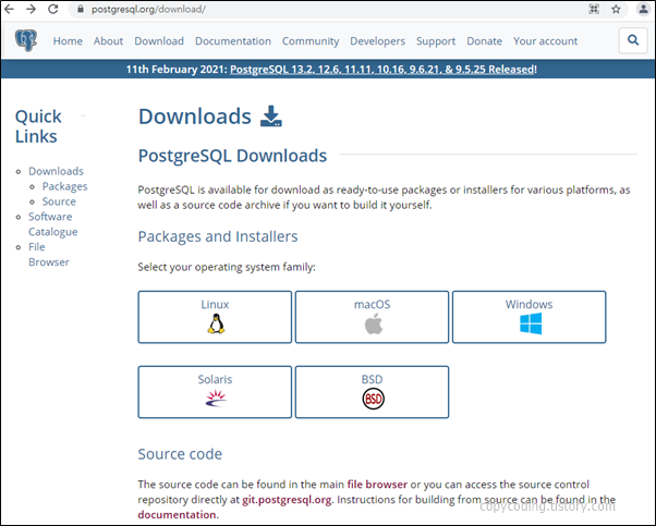 PostgreSql 프로그램을 바로 다운로드 받으려면