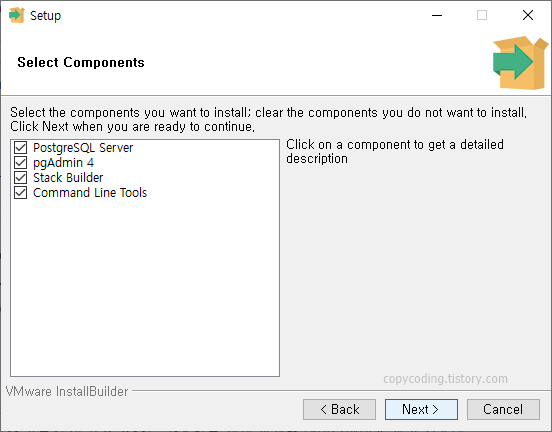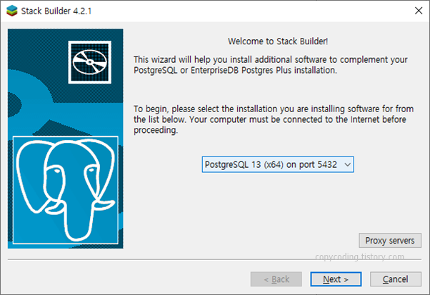 설치 위치는 PostgreSQL과 동일한 위치에 하도록 하고