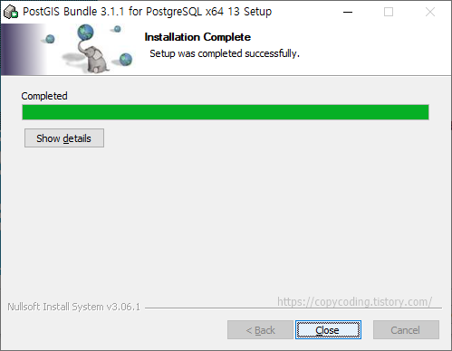 여기까지 PostGIS 설치가 완료 되었습니다.