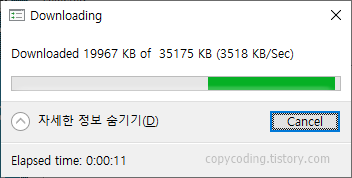 여기서 가끔 락이 걸리는 경우가 있는데(위의 그림처럼 응답 없음) 잠시 기다리거나 [Back]으로 돌아 같다가 다시 진행하거나 하면 다운로드가 진행 됩니다. 아마 다운로드 받기 위한 접속에 시간이 걸리는 것 같습니다.