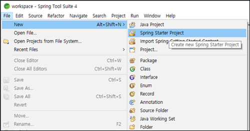 SpringToolSuite4를 실행하고