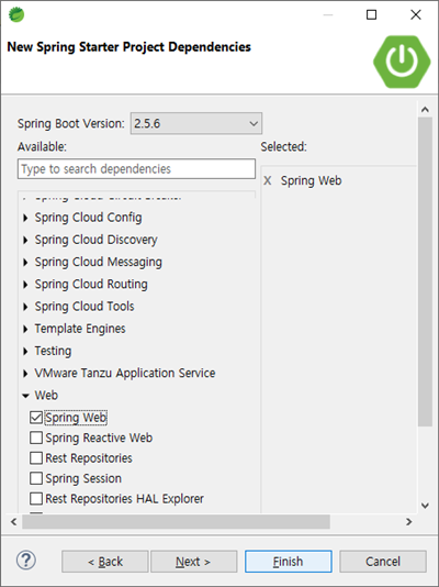 간단한 확인만 하려는 것이니 [Spring Web]만 선택 합니다.