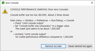 간단하게 사용할 것이므로 콘솔 버퍼는 나중에 변경시키기로 하고 일단 실행을 해 봅니다.