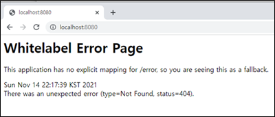 아직 아무것도 만들지 않아서 기본 오류페이지가 잘 나오고 있습니다. 설치는 완료 되었군요.