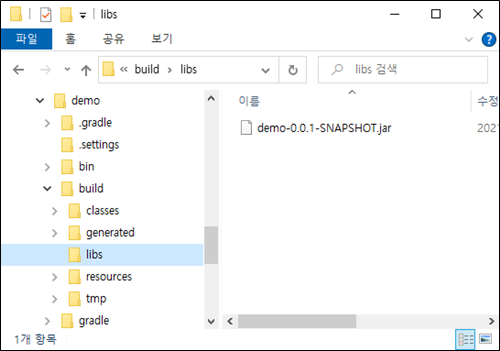 build > libs 폴더에 파일이 생성 되었습니다.