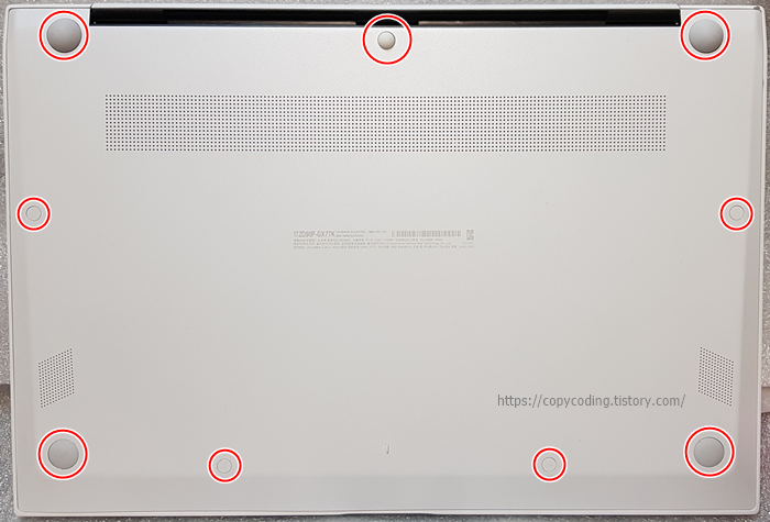 총 9개의 나사가 있고 제거하려면 작은 십자(+) 드라이버를 사용해야 합니다.