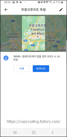 다운로드 받은 지도의 내용이 변경되었을 수 있으니 최신 정보로 업데이트 하는 기능입니다.