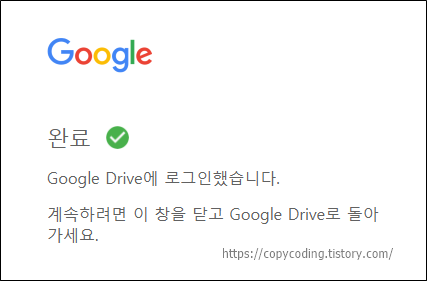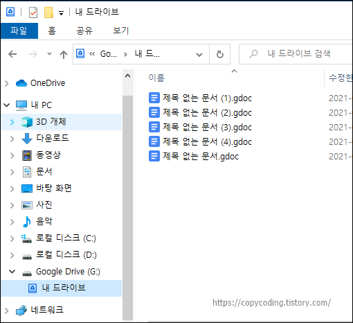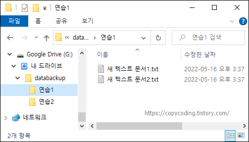 배치파일을 클릭해서 실행하면 구글 드라이브에 파일이 복사 됩니다.