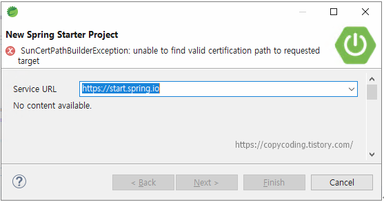 같은 컴퓨터 인데도 STS3은 이상이 없는데 버전 4를 사용하려면 오류가 발생해서 프로젝트를 생성하지 못하는 상황이 발생해서 해결한 방법을 기록 합니다.