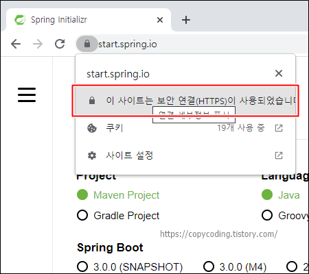 그리고 URL 앞에 있는 자물쇠 모양의 아이콘을 클릭합니다.