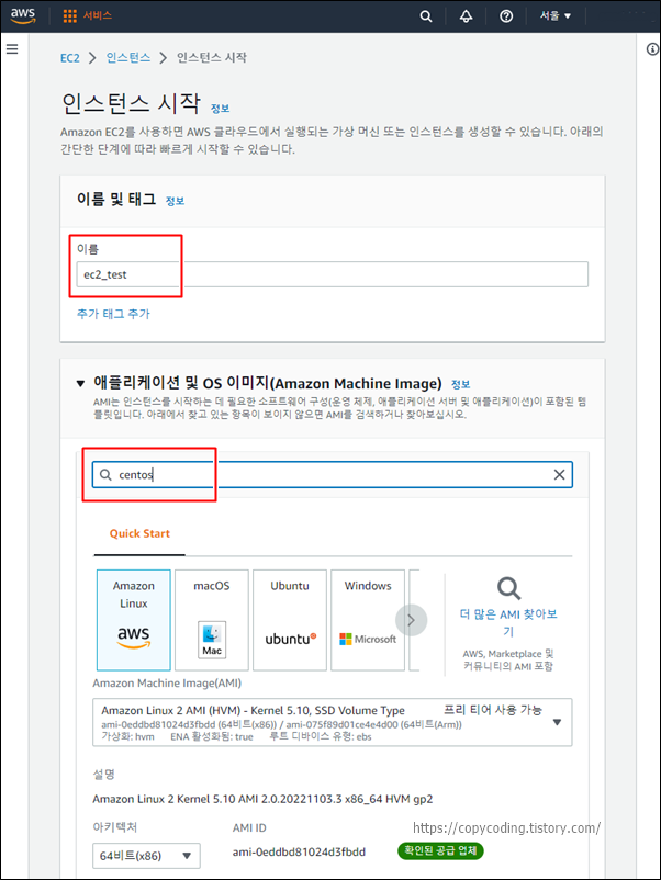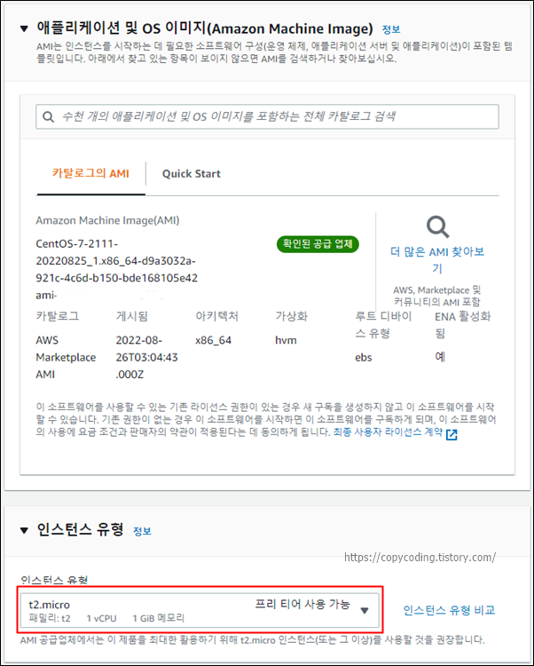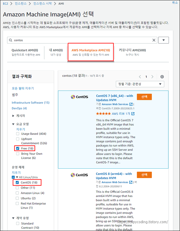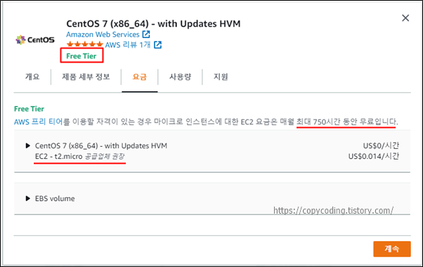 CentOS7에 Free Tier라는 내용은 안보이지만 가능하기 때문에 검색 결과에 나온것입니다.