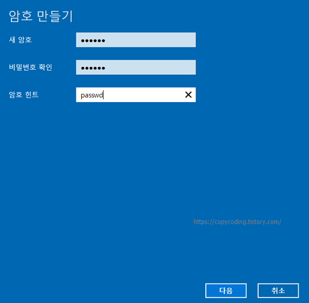 그리고 비밀번호를 입력 하고 [다음] 버튼을 클릭 합니다.