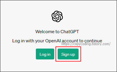 로그인 과 회원가입을 선택하는 화면입니다. 기존 가입자는 [Log in] 버튼을 클릭하고 신규로 가입을 하려면 [Sign up] 버튼을 클릭합니다. 기존 가입자는 [Log in] 버튼을 클릭하고