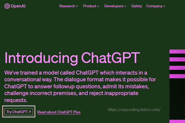 첫 화면에서 좌측 하단 [Try ChatGPT] 버튼을 클릭합니다.