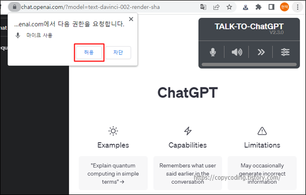 그리고 마이크 사용 권한을 요청하면 [허용] 버튼을 클릭합니다.