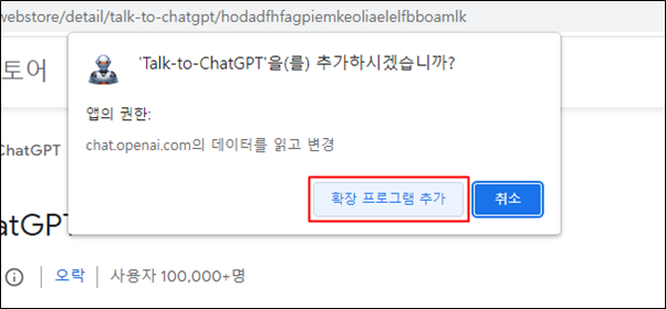 [Chrome에 추가] 버튼을 클릭합니다.