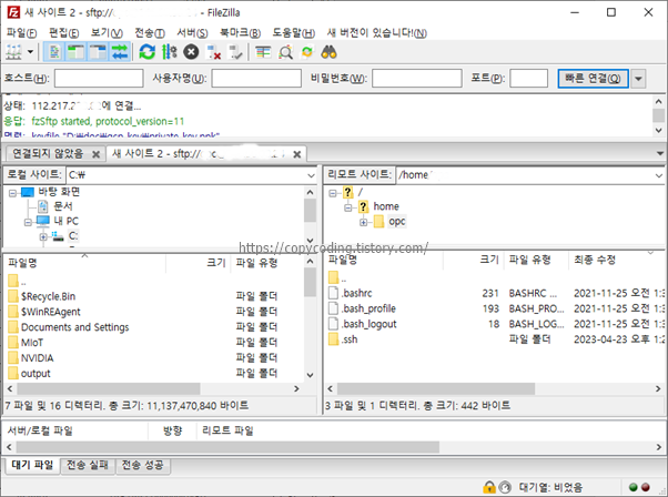 기본적으로 왼쪽이 local 컴퓨터 이고 오른쪽이 Server 입니다.