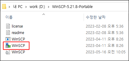 폴더로 이동하여 여기에서 WinSCP.exe 파일을 실행합니다.
