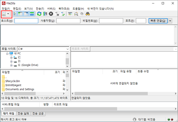 먼저 FileZilla를 이용한 접속 설정 방법입니다.