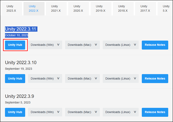 여기서는 테스트용으로 Unity 2022.3.11을 설치해 보도록 하겠습니다.