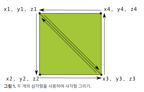 이렇게 시계 반대방향으로 순서를 나열하여 좌측과 우측의 삼각형을 그리도록 정의합니다.