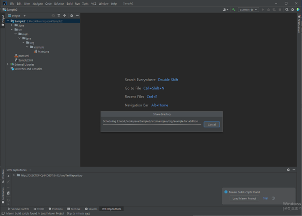 Sample1 프로젝트 Share Directory 작업이 완료 되었습니다.