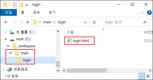 [D:\workspace\main + /login/ + file 명] 이렇게 폴더 구조와 파일을 만들면 되겠네요.