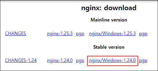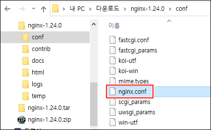 nginx/Windows-1.24.0 이게 윈도우에서 바로 사용할 수 있는 응용 프로그램입니다. 이걸 받으면 됩니다.