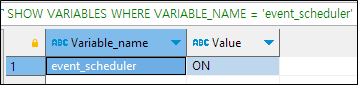SHOW VARIABLES WHERE VARIABLE_NAME = 'event_scheduler';
