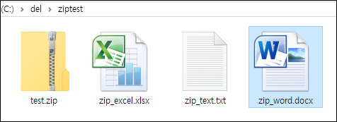 저장하려는 파일 위치와 파일명(C:/del/ziptest/test.zip)을 설정합니다.