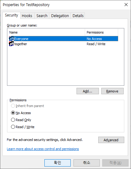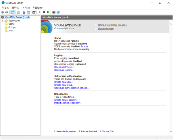 VisualSVN Server 5.3.1 Repository 생성 및 User Group 관리