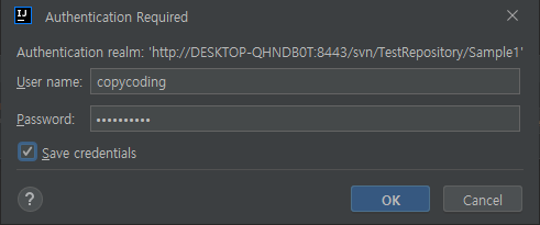 [Save credentials] 체크하고 [OK] 버튼을 클릭합니다.