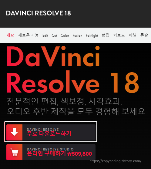 | 다빈치 리졸브(DaVinci Resolve) 18.6 다운로드 및 설치 (0) | 2023.11.10 |