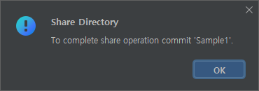 Sample1 프로젝트 Share Directory 작업이 완료 되었습니다.