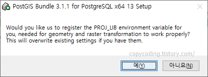 예전 Postgresql 버전을 변경하기 위해 윈도우 10에 설치해 보았습니다. 그냥 프로그램을 다운받아 설치하면 되는데 여러 번 설치를 해야 하는 상황이라 매번 검색을 하기 귀찮아 설치 매뉴얼을 만들었습니다. 어려운 부분은 없지만 그래도 보면서 작업 하면 시간이 단축되더군요.