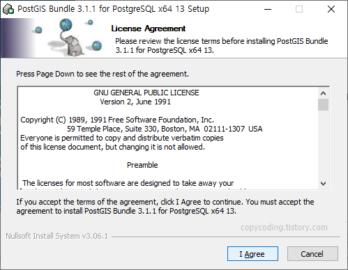 postgis 기능 반영이 잘 되었는지는 다음 명령어를 입력해서 실행해 봅니다.