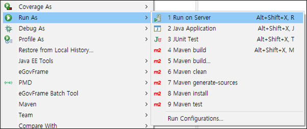 동일한 방법으로 Run On Server 를 선택 합니다.