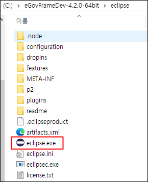 압축을 풀어준 위치가 사용자마다 다르겠지만 eclipse 폴더에서 eclipse.exe를 실해합니다.